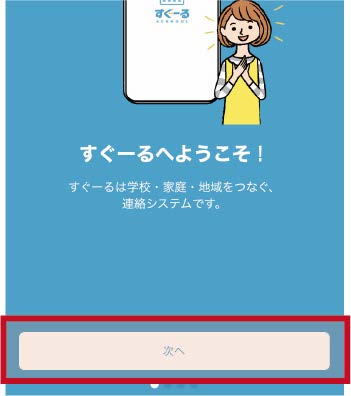「すぐーる へようこそ」という画面から「次へ」をタップしていき、個人情報保