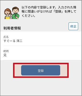 ユーザー情報を入力または選択していき、「次へ」をタップします。誤りがなければ「登録」をタップして完了です。